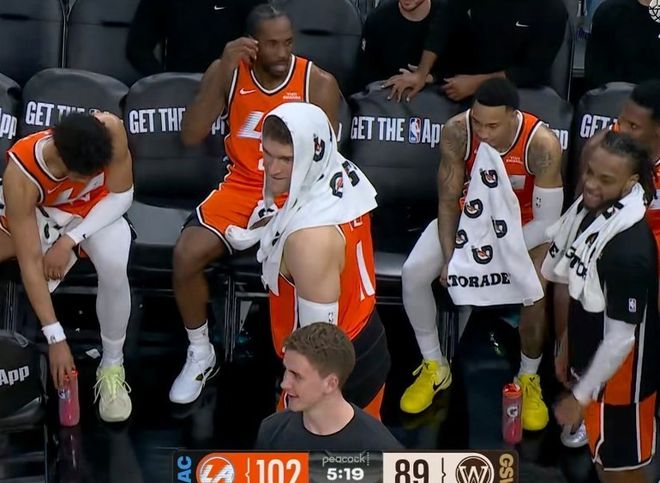 而在這段時(shí)間,勇士打出13-2的高潮拉開(kāi)分差,節(jié)末米勒上籃止血,穆迪續(xù)上三分,第一節(jié)快船19-31勇士。進(jìn)入第二節(jié),米勒和馬瑟琳幫助快船上分,加蘭終于順下助攻尼德豪澤吃餅,波杰姆斯基內(nèi)外開(kāi)花,霍福德三分球打??齑V卸尾ń芾^續(xù)下三分雨,好在鄧恩站出來(lái)連續(xù)得分。后半段加蘭造犯規(guī)兩罰全中,倫納德和加蘭攜手下三分雨,但勇士這邊博斯特和穆迪繼續(xù)外線轟炸,半場(chǎng)結(jié)束時(shí),勇士56-42領(lǐng)先快船。進(jìn)入第三節(jié),霍福德連續(xù)上分,倫納德中投+跳投回應(yīng),大洛單打霍福德,格林回應(yīng)空位三分球。