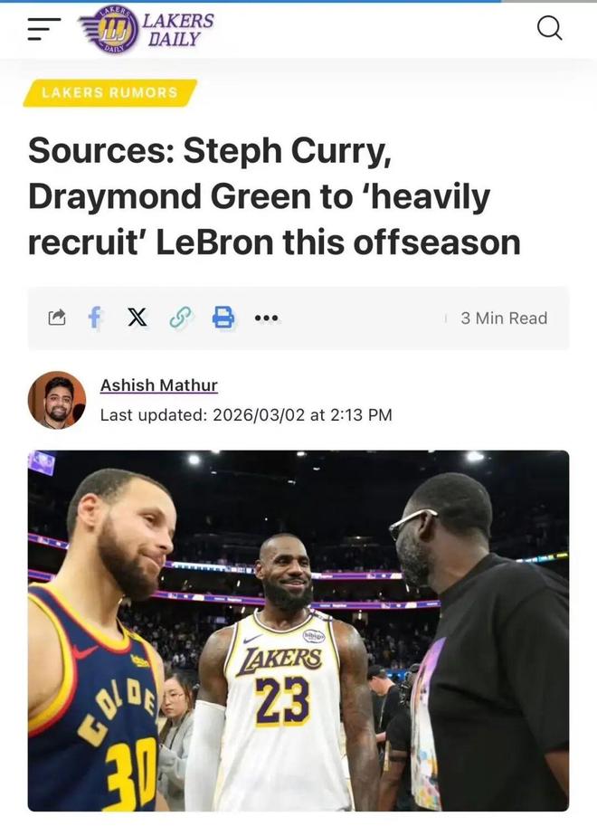 撰文稱(chēng)庫(kù)里追夢(mèng)夏天將全力招募詹姆斯