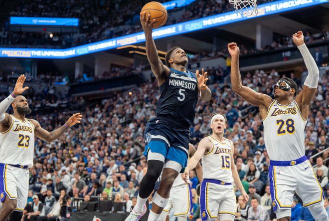 用明尼蘇達(dá)媒體話說,球隊(duì)剩余賽程,最好的結(jié)局是拿到西部第三,確保次輪避免雷霆的同時(shí),最大概率鎖定首輪對(duì)手湖人。上賽季森林狼和湖人季后賽首輪相遇,當(dāng)時(shí)森林狼常規(guī)賽西部第六,但首輪4-1紳士橫掃湖人,說句難聽但現(xiàn)實(shí)的話,湖人就是打不過森林狼,5場(chǎng)比賽,湖人4場(chǎng)得分在104分以下,進(jìn)攻基本癱瘓。里夫斯季后賽降檔,老詹老了,頂不住森林狼的車輪戰(zhàn)消耗,東契奇和愛德華茲的對(duì)位也不占優(yōu)勢(shì),關(guān)鍵湖人內(nèi)線被打穿了!本賽季湖人簽下艾頓,說句實(shí)話,還不如海斯。
