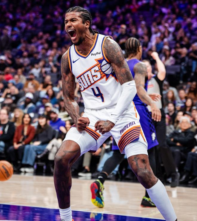 這一個(gè)比賽日,太陽奔赴金州第一中心,客場挑戰(zhàn)薩克拉門托國王,本場比賽火線復(fù)出的布克,在上半場打出了非常不俗的個(gè)人表現(xiàn),雖然后兩節(jié)狀態(tài)下滑,但太陽還是靠著全民皆兵的神勇發(fā)揮,一度建立起了20分的領(lǐng)先優(yōu)勢,最終以114-103客場擊敗了國王,完成了單賽季橫掃對手的壯舉。
