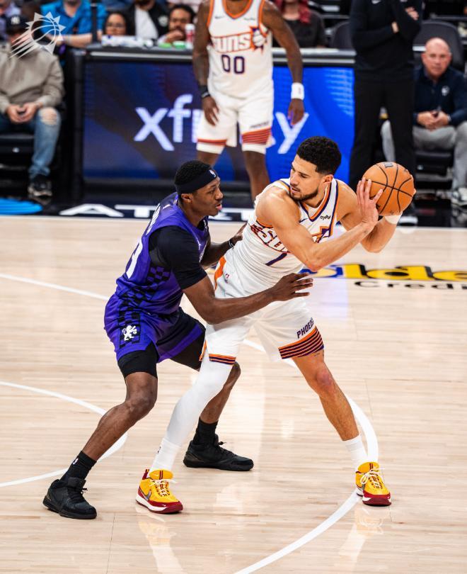 重新回到賽場之后,布克突然失去了投籃手感,四節(jié)戰(zhàn)罷命中率直接下滑到了19投6中,但還是貢獻(xiàn)了17分、4個(gè)籃板和6次助攻,而和布克搭檔后場雙槍的吉萊斯皮扛起了帶動(dòng)球隊(duì)的重任,全場比賽打出了17+6+9+1的全能表現(xiàn)。