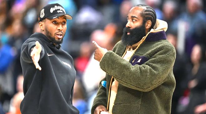 回首往事,滿是唏噓。在籃網(wǎng)時,距離東決只差杜蘭特鞋子的一碼;在76人時,自己拼了兩場40+的絕殺表現(xiàn),卻被恩比德的夢游拉胯給葬送 。那時候的哈登,是扛著球隊往前走的孤膽英雄。