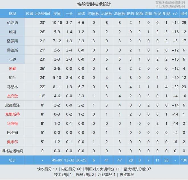 倫納德今天只打了23分鐘,投籃18中10,三分7中3,罰球6中6,拿到29分8板2助1斷,連續(xù)39場比賽砍下20+!快船新援馬瑟林11中8高效砍下23分8板4助,正負(fù)值+32全場最高。加蘭10中5,替補(bǔ)拿到12分4板8助,正負(fù)值+20!