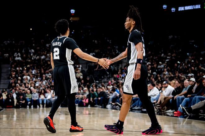 馬刺隊(duì)的文班亞馬因傷缺席。主場(chǎng)出賽的馬刺隊(duì)開(kāi)局不錯(cuò),瓦塞爾和??怂垢鬟M(jìn)三分,他們率隊(duì)以10-5領(lǐng)先。約基奇和穆雷追回5分,尚帕尼和瓦塞爾分別投中三分,卡斯?fàn)杻闪P全中,馬刺隊(duì)鞏固領(lǐng)先位置。約基奇發(fā)力連得6分把差距縮小到1分,馬刺隊(duì)進(jìn)攻多點(diǎn)開(kāi)花,他們又打出8-1的小高潮再次拉開(kāi)。布朗突破得手,布萊恩特連得6分結(jié)束首節(jié),馬刺隊(duì)以37-25領(lǐng)先12分。