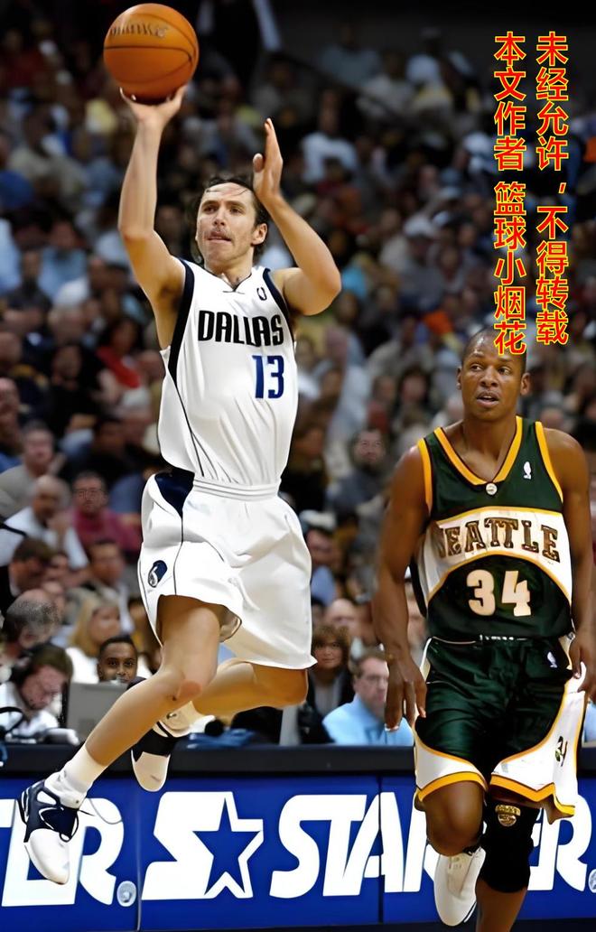 彼時的太陽在一個賽季前簽下了主教練邁克-德安東尼,這位主教練整個職業(yè)生涯只玩炮轟,別的沒有興趣,想打炮轟,控衛(wèi)位置就十分重要,原來的控衛(wèi)史蒂夫-馬布里肯定是不太行,賽季中期被送到了尼克斯,因此太陽一整個賽季都在試圖交易個優(yōu)秀控衛(wèi)過來,但始終未能如愿,賽季結(jié)束,正好小牛首發(fā)控衛(wèi)史蒂夫-納什成受限制自由球員了,太陽就想把納什簽過來。
