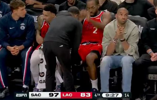 萊昂納德被德羅贊撞傷頭部下場治療。