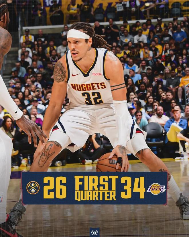 第一節(jié)打完,湖人34-26領(lǐng)先8分。掘金的防守策略也是夾擊東契奇,就賭其他湖人球員外線投不進(jìn),可惜今天掘金賭錯(cuò)了。首節(jié)湖人三分球13中6,三分命中率46.2%。第二節(jié)湖人用同樣策略去夾擊大瓦蘭,后者兩次橫傳失誤被換下。