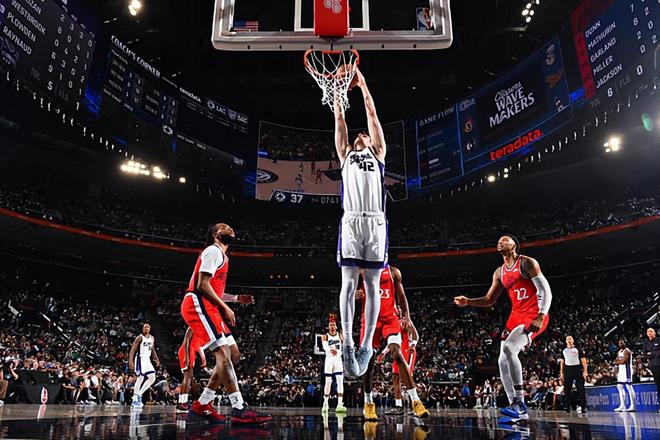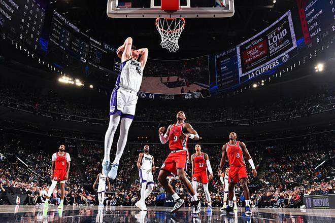 本場比賽中,國王的先發(fā)中鋒先發(fā)中鋒馬克西姆-雷諾(Maxime Raynaud)的表現(xiàn)令人刮目相看。雷諾全場出場30分03秒,投籃12中11,罰球3中1,以驚人的效率得到了23分5籃板2助攻的數(shù)據(jù),還有4次失誤和3次犯規(guī),正負(fù)值為+7。雷諾在進(jìn)攻端展現(xiàn)出了自己超強(qiáng)的籃下得分能力和終結(jié)能力,他不斷在對手內(nèi)線制造威脅,他也是直接打爆了快船的先發(fā)中鋒布魯克-洛佩斯(Brook Lopez)。雷諾的防守能力相對來說比較一般,但是他在本場比賽中其實(shí)也沒有出現(xiàn)什么太大的防守問題??傮w來看,雷諾在本場比賽中算是打出了現(xiàn)象級的表現(xiàn),展現(xiàn)出了自己各方面的特點(diǎn),這也為球隊(duì)的這場意料之外的勝利做出了巨大的貢獻(xiàn)。