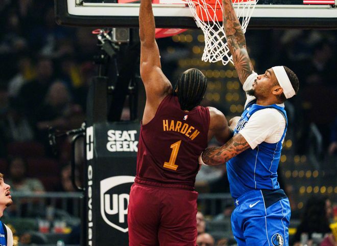 雙方膠著幾分鐘,華盛頓和馬紹爾下三分雨打破平衡,獨(dú)行俠很快拉開10分分差。關(guān)鍵時(shí)刻斯特魯斯三記三分球,米切爾沖擊籃下,第一節(jié)打完,騎士追到31-35。進(jìn)入第二節(jié),華盛頓續(xù)上三分,弗拉格單吃莫布里,米切爾三分+施羅德上籃追平。騎士的三后衛(wèi)陣容確實(shí)沒什么效果,馬紹爾連續(xù)強(qiáng)攻得手,韋德三分回應(yīng)。后半段斯特魯斯造殺傷+扔三分,弗拉格和米德爾頓內(nèi)外開花。節(jié)末莫布里補(bǔ)籃+接到哈登傳球?qū)?+1打進(jìn)。半場結(jié)束時(shí),騎士59-60落后獨(dú)行俠。哈登沒什么進(jìn)攻欲望,看起來像沒睡醒。