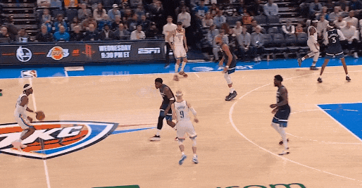 引華茲和蘭德爾雙人上線,卡魯索假擋真順下,亞歷山大單手揮傳,卡魯索上籃。