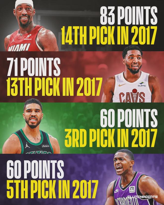 這是東契奇生涯第17次周最佳,阿德巴約則是生涯第4次周最佳,前3次分別是:2019年12月17日?、2024年1月16日和2026年1月20日。阿德巴約是2017屆的首輪14號秀,同屆還有三人單場拿過60+:米切爾、塔圖姆和??怂?。