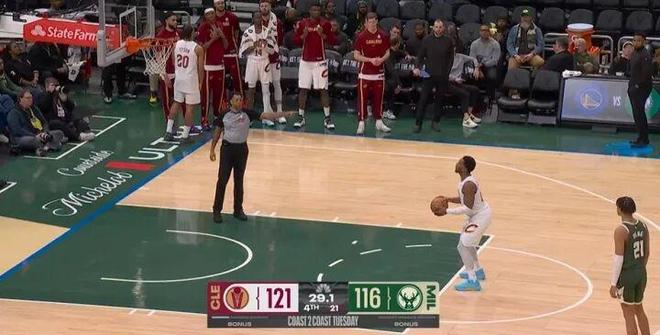 最后29秒,雄鹿落后5分,他們包夾防守梅里爾破壞球權(quán)出界