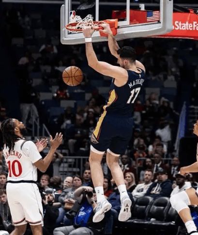就連之前狀態(tài)起伏的錫安,這場(chǎng)也高效得很——8投6中,輕輕松松拿下14分4籃板3助攻,還送了1記大帽,完全不像賽季初那個(gè)掙扎的胖虎。