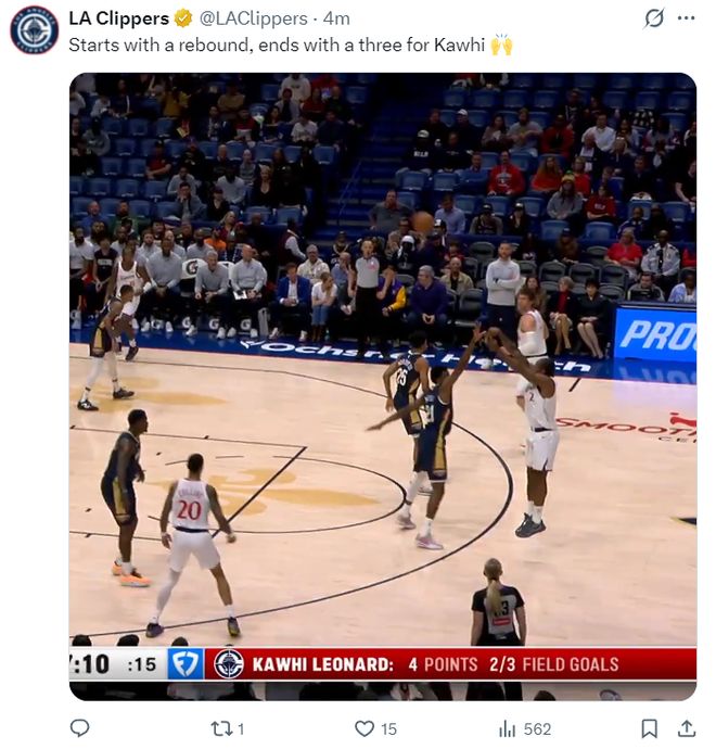 易邊再戰(zhàn)快船的進(jìn)攻效率依舊斷層,倫納德完成2+1后整整半節(jié)只拿到11分,小卡再度完成20+后他已經(jīng)完成連續(xù)46場20+繼續(xù)刷新個人生涯新高與快船隊(duì)史新高。三節(jié)打完倫納德12中9,三分6中4,拿到25分7籃板1助攻1搶斷,可三節(jié)打完快船已經(jīng)落后9分之多。