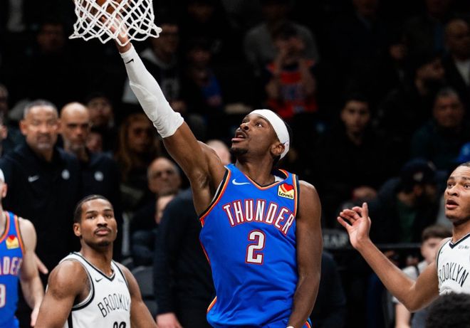 北京時(shí)間3月19日,NBA常規(guī)賽衛(wèi)冕冠軍雷霆客場(chǎng)對(duì)陣籃網(wǎng),其中雷霆是背靠背第二場(chǎng),克洛尼因傷提前退賽。亞歷山大三節(jié)9中8高效20+6提前打卡,連續(xù)30場(chǎng)得分20+與連續(xù)63個(gè)客場(chǎng)得分20+,刷新兩項(xiàng)歷史第一紀(jì)錄,引領(lǐng)雷霆逐步碾壓擴(kuò)大42分優(yōu)勢(shì)提前鎖定勝局,最終雷霆121-92戰(zhàn)勝籃網(wǎng)豪取10連勝。雷霆前70場(chǎng)55勝穩(wěn)居聯(lián)盟第一,且本賽季唯一打出兩次10連勝球隊(duì),籃網(wǎng)遭遇5連敗。