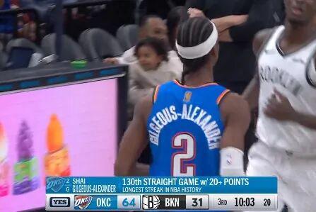 最后,亞歷山大強(qiáng)忍著極大的不適,繼續(xù)打了2分鐘,20分鐘砍20分,艱難延續(xù)了130場(chǎng)得分20+的歷史紀(jì)錄。