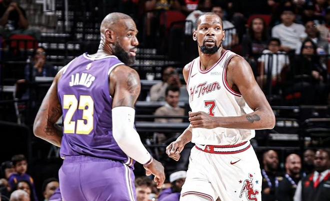數(shù)據(jù)方面,湖人這邊,盧卡-東契奇40分9籃板10助攻;勒布朗-詹姆斯14中13砍下30分4籃板;奧斯汀-里夫斯12分3籃板8助攻;德安德烈-艾頓16分4籃板3封蓋;八村壘8分3籃板;盧克-肯納德5分;馬庫(kù)斯-斯馬特5分3籃板4助攻?;鸺@邊,阿爾佩倫-申京27分4籃板10助攻;阿門(mén)-湯普森26分11籃板4助攻;凱文-杜蘭特18分6籃板4助攻;小賈巴里-史密斯18分5籃板4助攻;塔里-伊森10分6籃板;里德-謝潑德11分2籃板3助攻。