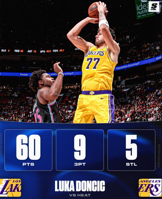 全場比賽東契奇37分鐘,30中18,三分17中9,拿到60分7籃板3助攻5搶斷,太厲害了。
