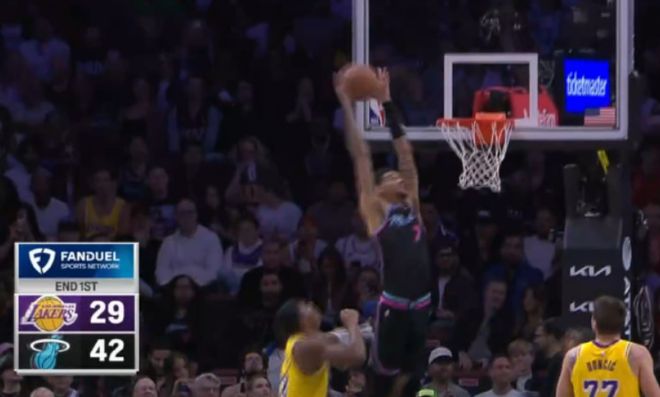 然而熱火(場(chǎng)均回合數(shù)104.7高居聯(lián)盟榜首)絲毫不給面子,憑借本賽季最快的進(jìn)攻節(jié)奏,首節(jié)打了湖人42-29攻擊波。