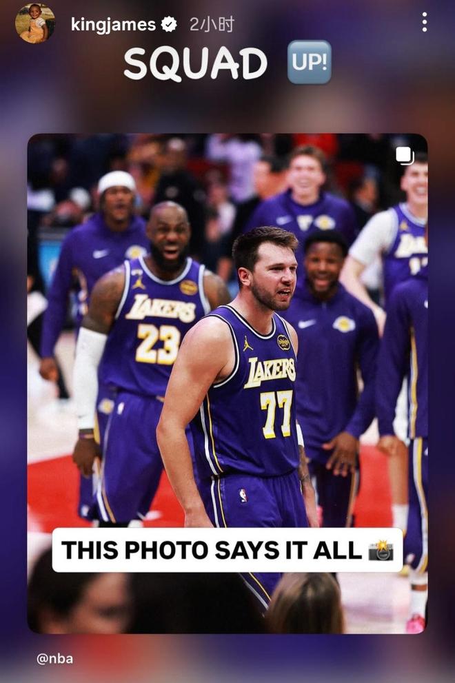 第二個動態(tài)是詹姆斯盛贊球隊化學(xué)反應(yīng)。轉(zhuǎn)發(fā)的是NBA官方社媒的圖片,原文“這張圖說明了一切”,傳遞出湖人雙核帶隊、全隊士氣高漲的信號,也呼應(yīng)了球隊7連勝的火熱狀態(tài)。詹姆斯則加上了自己的備注SQUAD UP(集結(jié))。