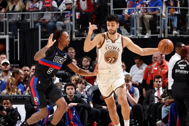 結果可想而知,哪怕面對缺少后場發(fā)動機坎寧安的活塞隊,殘陣勇士隊也處于絕對劣勢,尤其是在5號位的儲備上。