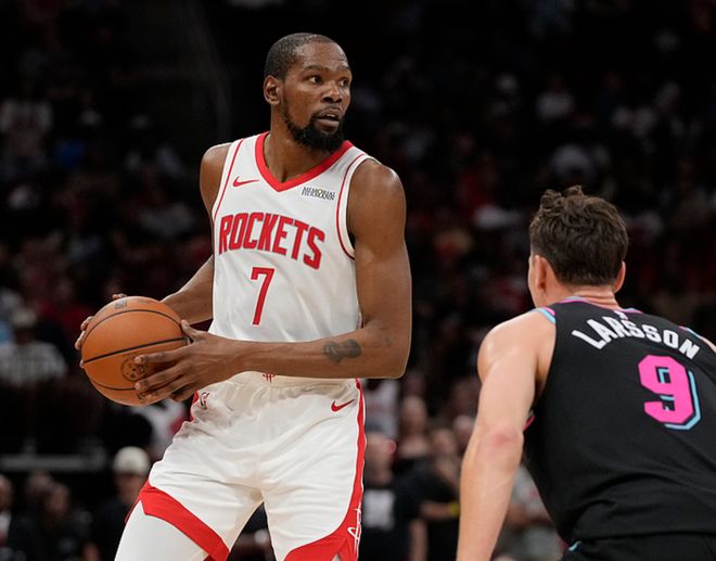 火箭主場迎戰(zhàn)熱火,火箭是背靠背作戰(zhàn),體力不如熱火,火箭方面范弗利特、亞當(dāng)斯、卡佩拉缺陣,熱火方面威金斯、鮑威爾、哈克斯缺陣,三節(jié)戰(zhàn)罷熱火領(lǐng)先9分,第四節(jié)熱火開局領(lǐng)先11分,隨后火箭打出強勢表現(xiàn)反超了6分,熱火在比賽還剩5秒時反超1分,杜蘭特中投不中,阿門壓哨補籃,火箭123-122絕殺熱火。杜蘭特17中9(三分9中5)得到27分3板3助,阿門17中10得到24分18板4助,謝潑德12中8(三分8中5)得到23分2板14助4斷,申京13中9得到19分13板3助,熱火方面阿德巴約21中12得到32分21板4助,希羅22中10得到25分6板4助,豐泰基奧12中8(三分9中5)得到21分3板3助。