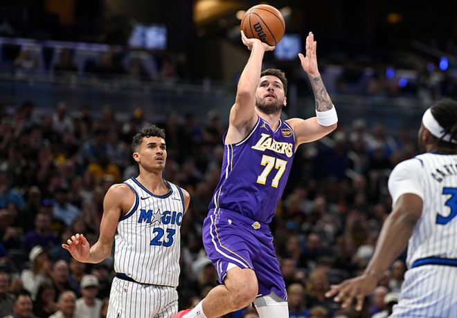 湖人客場挑戰(zhàn)魔術(shù),湖人方面克勒貝爾缺陣,魔術(shù)方面小瓦格納、布萊克、艾薩克缺陣,首節(jié)比賽湖人一度領(lǐng)先14分,首節(jié)戰(zhàn)罷領(lǐng)先7分,第二節(jié)魔術(shù)強勢反彈反超比分,半場戰(zhàn)罷魔術(shù)領(lǐng)先3分,第三節(jié)魔術(shù)繼續(xù)占據(jù)上風(fēng),三節(jié)戰(zhàn)罷魔術(shù)領(lǐng)先5分,第四節(jié)魔術(shù)長時間保持領(lǐng)先,比賽還剩50秒時魔術(shù)領(lǐng)先5分,里夫斯上籃+艾頓2罰1中,分差追到2分,比賽還剩6秒,魔術(shù)失誤,湖人得到球權(quán),暫?;貋砜霞{德三分,湖人反超1分,比賽還剩1秒,薩格斯后場三分不中,湖人105-104擊敗魔術(shù)。東契奇30中12(三分13中3)得到33分5板8助4斷,里夫斯20中10得到26分7板5助2斷,詹姆斯13中5得到12分6板4助3斷,肯納德7中5(三分4中3)得到13分3板。魔術(shù)方面班凱羅14中4得到16分5板6助3斷、薩格斯9中5得到14分3板6助,貝恩14中4得到12分4板5助3斷。