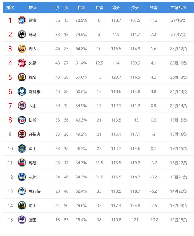 今日比賽后快船、開拓者排名互換,其他西部球隊排名不變。