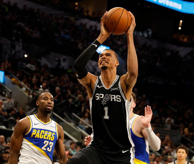 馬刺主場迎戰(zhàn)步行者,馬刺少了卡斯?fàn)?、瓦塞爾,步行者少了哈利伯頓、祖巴茨,馬刺全場占據(jù)上風(fēng),一度領(lǐng)先28分,最終134-119贏下比賽。文班18中8得到20分8板6助5帽,哈珀13中9得到24分4板3助,凱爾登12中10得到24分4板4助,步行者方面內(nèi)姆哈德13中8得到25分7助,沃克10中8(三分7中5)得到21分4板4助,西卡14中6得到14分3板5助。