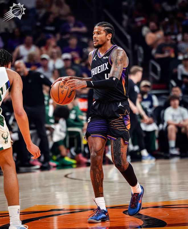 雖然全場(chǎng)戰(zhàn)罷太陽一共有6名球員得分上雙,其中杰倫格林砍下了24分,吉萊斯皮則成為了球隊(duì)外線最準(zhǔn)的炮臺(tái),一個(gè)人命中4記三分球飆下了18分,但依舊帶不動(dòng)夢(mèng)游的核心布克。