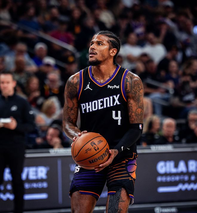 經(jīng)過中場(chǎng)的調(diào)整之后,布克的狀態(tài)依舊沒有顯著提升,四節(jié)戰(zhàn)罷只有17次出手命中4球的發(fā)揮,貢獻(xiàn)了14分、4個(gè)籃板、7次助攻和2次搶斷的全面?zhèn)€人數(shù)據(jù),得分效率低于賽季平均水平,成為了球隊(duì)輸球的最大罪人。